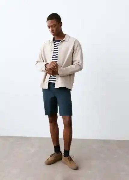 Cierre de Cremallera y Botón Diseño Corto Diseño Recto Dos Bolsillos Laterales Tejido de Algodón Trabillas Para Cinturón - 27005939_56.