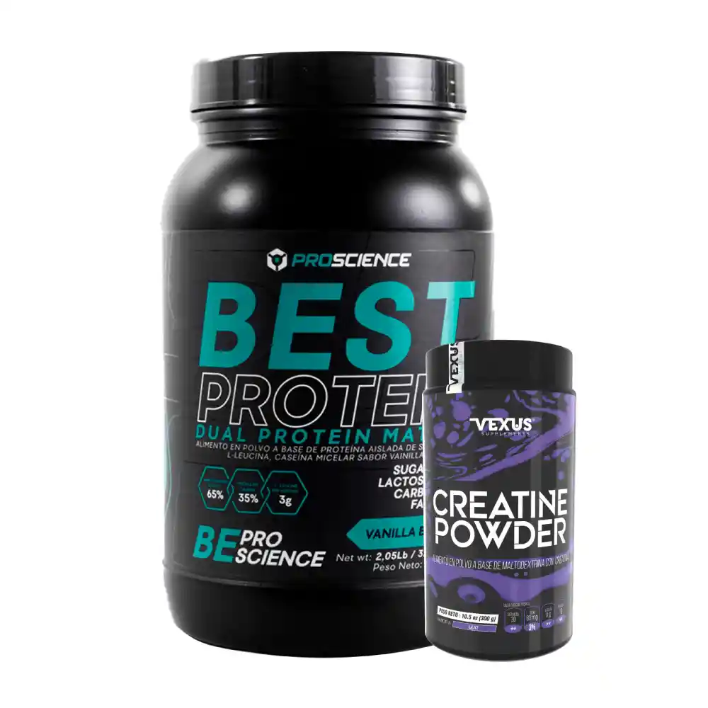 BEST PROTEIN es una mezcla 3 en 1, Proteína aislada de suero de leche de altísima calidad, Caseina Micelar (proteína de absorción lenta) y Leucina. BEST PROTEIN no contiene azúcar, grasa, carbohidratos ni lactosa, lo cual la hace una aliada perfecta. Por supuesto, hicimos muchísimas pruebas para dar con un sabor que debes probar. Sabor: Vainilla Gourmet / Chocolate Gourmet / Coco Blue Presentación: 2.18 lbs. Ingredientes: Proteína Aislada de Suero, Caseína Micelar, L-Leucina, Goma Guar, Vitamina C (Ácido Ascórbico), Vainilla Gourmet (Saborizante Idéntico al Natural), Stevia (Edulcorante), Dióxido de Silicio, Vitamina B6 (Piridoxina), Vitamina B1 (Tiamina), Vitamina D3.