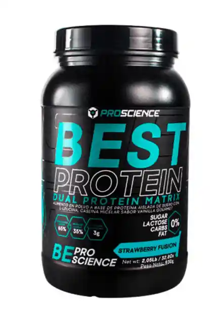 BEST PROTEIN de PROSCIENCE es la integración de la ciencia en un suplemento. combinación entre la proteína aislada de suero 65% y proteína de caseina 35%, con el objetivo de una mejor biodisponibilidad y mayor síntesis de proteína para acelerar el crecimiento de la masa muscular magra. Este producto no contiene azúcar, grasa. La proteína aislada de suero es excelente por su valor biológico, esto se debe a la gran cantidad de aminoácidos esenciales que son encontrados aquí. Debido a esto su absorción es muy rápida, pero con la desventaja que rápidamente deja de actuar. La proteína caseína por el contrario tiene una absorción más lenta, lo que no permitiría un aumento brusco de la hormona insulina, también va a permanecer más tiempo en el cuerpo sintetizando más proteína. El aminoácido leucina es un aminoácido esencial y es conocido como el aminoácido estrella, por el hecho de que es capaz de iniciar la síntesis de proteína estimulando principalmente el mTOR, responsable en la célula de coordinar la síntesis de proteína; pero este es el que inicia, pero lógicamente son necesarios todos los aminoácidos esenciales, para una completa síntesis proteica. Con la sinergia de estos tres (Proteína de suero aislada, Caseína y el aminoácido leucina), queremos aportar una mejor síntesis proteica, con mayor eficiencia y más prolongada en el tiempo; lo cual consideramos será mucho más eficiente para quien lo use. ¿Para qué sirve Best Protein ProScience? Best Protein (proteína limpia) es la proteína perfecta si deseas ganar músculo magro (sin grasa) o estas en etapa de reducción porcentaje de grasa corporal (pérdida de peso). Best Protein de Pro Science es una mezcla 3 en 1, Proteína aislada de suero de leche de altísima calidad, Caseina Micelar (proteína de absorción lenta) y Leucina con el objetivo de una mejor biodisponibilidad y mayor síntesis de proteína para acelerar el crecimiento de la masa muscular magra. Best Protein no contiene azúcar, grasa, carbohidratos ni lactosa, lo cual la hace una aliada perfecta. Muy efectiva para aumentar masa muscular. ¿Cómo funciona Best Protein Pro Science? La proteína aislada de suero es excelente por su valor biológico, esto se debe a la gran cantidad de aminoácidos esenciales que son encontrados aquí. Debido a esto su absorción es muy rápida, pero con la desventaja que rápidamente deja de actuar. La proteína caseína por el contario tiene una absorción más lenta, lo que no permitiría un aumento brusco de la hormona insulina, también va a permanecer más tiempo en el cuerpo sintetizando más proteína. El aminoácido leucina es un aminoácido esencial y es conocido como el aminoácido estrella, por el hecho de que es capaz de iniciar la síntesis de proteína estimulando principalmente el mTOR, responsable en la célula de coordinar la síntesis de proteína; este es el que inicia, pero lógicamente son necesarios todos los aminoácidos esenciales, para una completa síntesis proteica. Con la sinergia de estos tres (Proteína de suero aislada, Caseína y el aminoácido leucina), queremos aportar una mejor síntesis proteica, con mayor eficiencia y más prolongada en el tiempo; lo cual será mucho más eficiente para quien lo use. ¿Cómo tomar Best Protein ProScience? Mezcle una cucharada de Best Protein con 5-6 onzas de agua (o leche para aumentar la cremosidad y las calorias). El momento ideal para tomarla es después del entrenamiento. También puede tomar la proteína como bocadillo entre las comidas. Si su objetivo es perder grasa, consumir solo una porción por día, si su objetivo es mantener o aumentar la masa muscular, tome dos porciones por día.