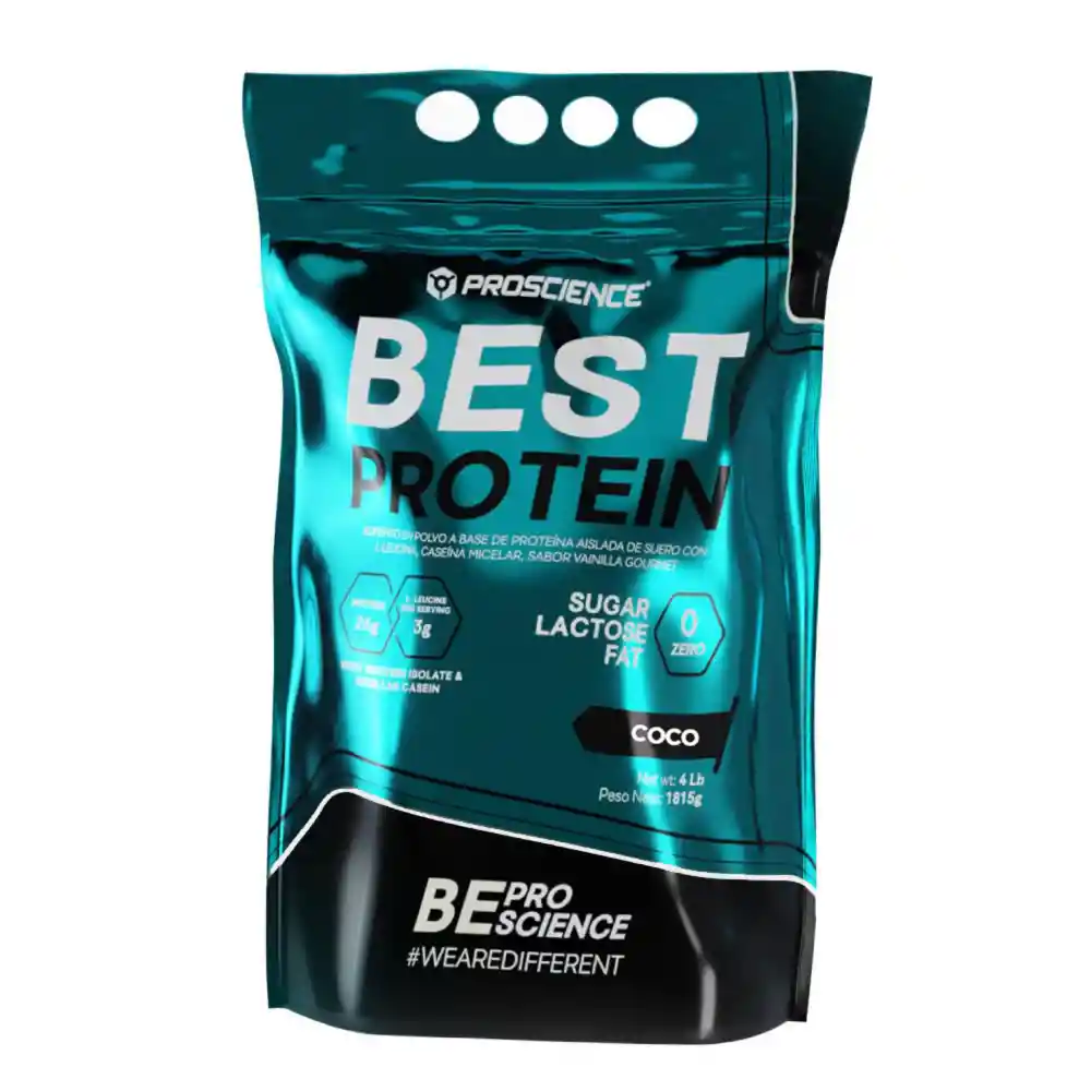 Proteína aislada de suero de leche, Caseina Micelar y Leucina. 1 servicio de Best Protein (1 scoop) te brinda 26 g de proteína y 3 g de leucina. La pueden tomar niños y adultos, puede usar para recetas como: Pancakes, batidos etc. Ingredientes: Proteína Aislada de Suero, Caseína Micelar, L-Leucina, Goma Guar, Vitamina C (Ácido Ascórbico), Vainilla Gourmet (Saborizante Idéntico al Natural), Stevia (Edulcorante), Dióxido de Silicio, Vitamina B6 (Piridoxina), Vitamina B1 (Tiamina), Vitamina D3. Presentación comercial: Bolsa. Material del empaque: Bolsa. Método de conservación: El producto debe estar almacenado en su empaque original a temperatura inferior a 30°C y a una humedad relativa inferior a 75%. No introducir elementos húmedos, después de abierto consumase en el menor tiempo posible. Contenido: Neto 4 lbs / 64 Oz. Servicios: 55 Scoops por envase Sabor: Vainilla Gourmet / Chocolate Gourmet. Modo o método de consumo o preparación: Mezclar 1 cuchara (33 g) del producto en 180 ml de agua, agítese hasta obtener un producto homogéneo, consumase una vez preparado. Formato de Venta: Polvo. Registro Sanitario: RSA-0008866-2019.