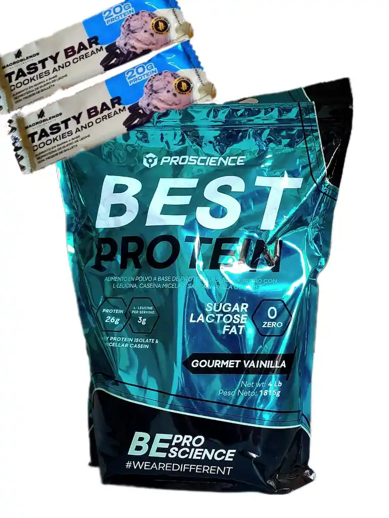 BEST PROTEIN es una mezcla 3 en 1, Proteína aislada de suero de leche de altísima calidad, Caseina Micelar (proteína de absorción lenta) y Leucina. BEST PROTEIN no contiene azúcar, grasa, carbohidratos ni lactosa. Debido a esto su absorción es muy rápida, pero con la desventaja que rápidamente deja de actuar. La proteína caseína por el contario tiene una absorción más lenta, lo que no permitiría un aumento brusco de la hormona insulina, también va a permanecer más tiempo en el cuerpo sintetizando más proteína.