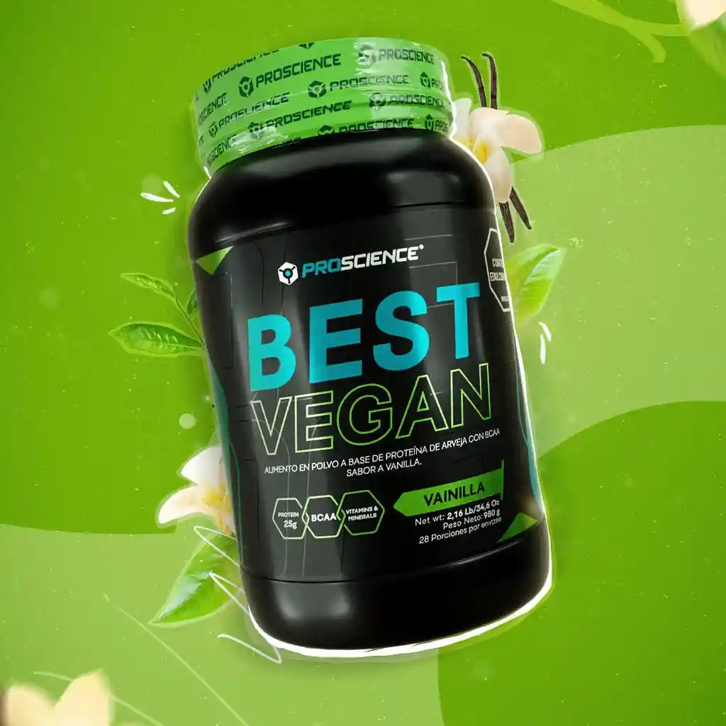 Alimento en polvo a base de proteína de arveja con BCAA, enriquecido con vitaminas y minerales sabor Vainilla. Ingredientes: Proteína de Arveja, Proteína de Arroz Orgánica, BCAA (L-Leucina, L-Isoleucina, L- Valina), Leche de Coco en polvo, Cocoa, Sabor idéntico al natural (Chocolate), Goma Xanthan (Espesante), edulcorante natural (Stevia), Vitamina C (Ácido Ascórbico), Citrato de Sodio, Fumarato ferroso, Vitamina E, Lactobacillus Paracasei (Cultivo probiótico), Vitamina B6(Piridoxina), Biotina, Vitamina B1 (Tiamina), Betacaroteno, Vitamina D3.