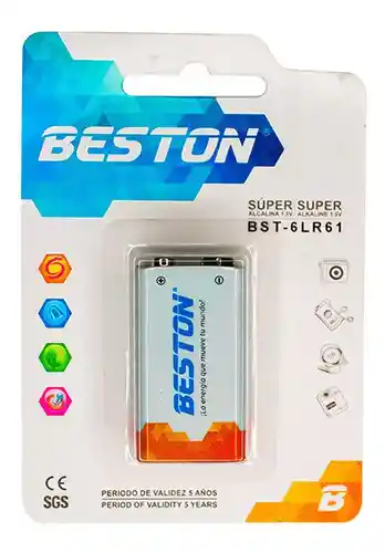 BATERÍA 9V 6LR61 CUADRADA ALCALINA BST-9V-6LR61