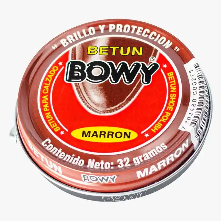 👞✨ Betún Crema en Pasta Bowy – Marrón, 32 g Revive y protege tus zapatos de cuero con el Betún Crema en Pasta Bowy en tono marrón. Su fórmula cremosa penetra profundamente el material para restaurar el color, nutrir el cuero y ofrecer un brillo natural que realza cualquier par. Características: 👞✨Contenido: 32 g de crema en pasta 👞✨Color: Marrón cálido 👞✨Textura: Rica y cremosa, de fácil aplicación 👞✨Acabado: Brillo suave y natural 👞✨Nutre, suaviza y flexibiliza el cuero 👞✨Incluye aplicador (esponja o cepillo, según presentación) Protege contra grietas, resequedad y desgaste diario