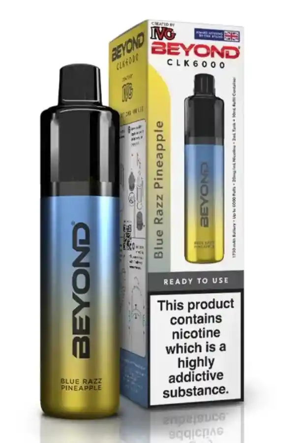 El IVG Beyond CLK 6000 BLUE RAZZ PINEAPPLE cuenta con una batería integrada de gran capacidad ( 1750 mAh) , recargable mediante cable USB tipo C. Incluye un cartucho precargado de 2 ml y un depósito de recarga de 15 ml . Su concentración de nicotina de 50 mg lo hace ideal tanto para principiantes como para vapeadores experimentados. El Beyond CLK 6000 es muy fácil de usar gracias a su sistema de activación por inhalación : basta con inhalar a través de su boquilla para empezar a vapear. HASTA 12000 CALADAS.