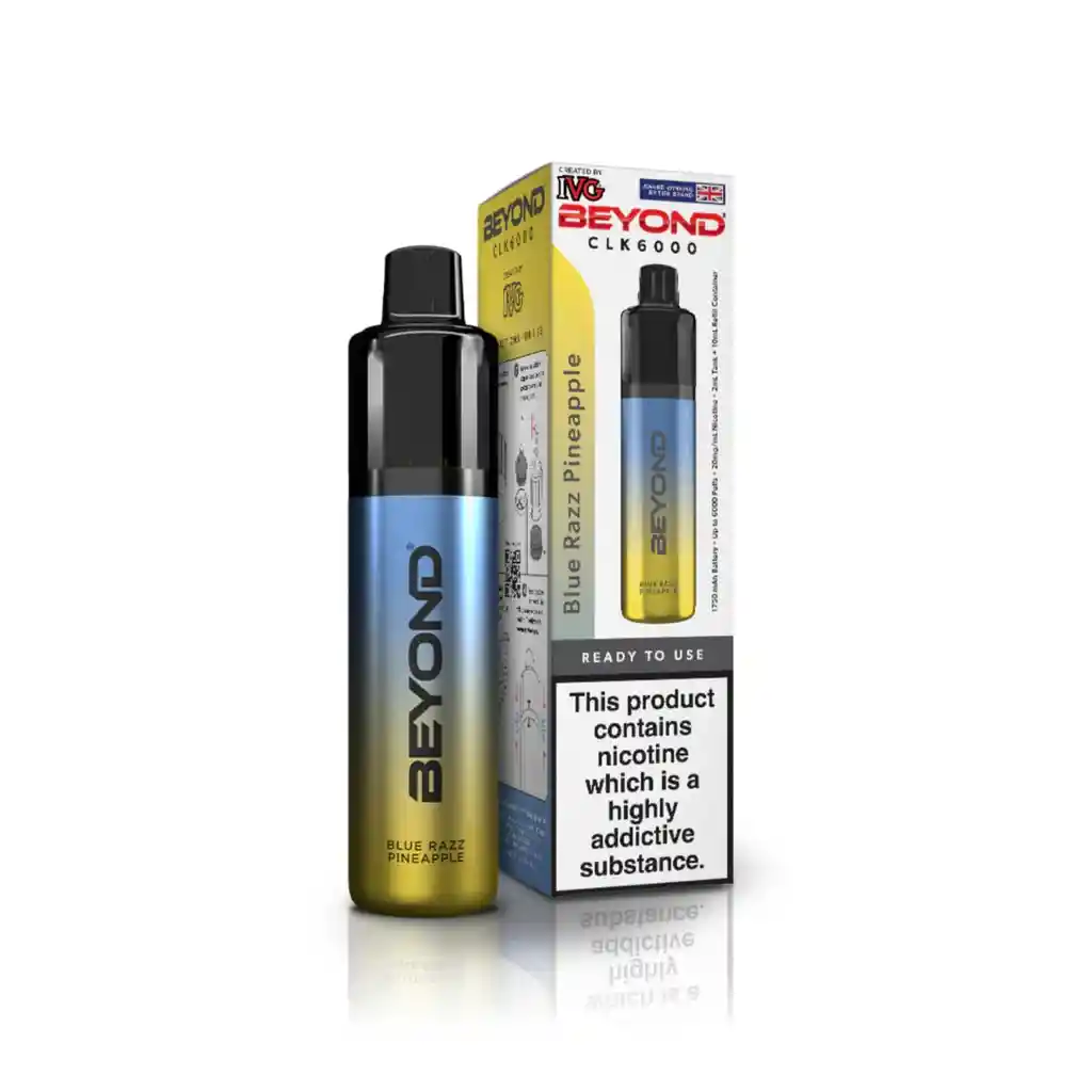 El Beyond CLK6000 de IVG es un dispositivo de vapeo desechable de alta capacidad y larga duración, diseñado para ofrecer hasta 12000 caladas (puffs). Cuenta con una batería recargable de 1750 mAh y un sistema de cápsula precargada de 2 ml junto con un tanque de relleno adicional de 10 ml (total 12 ml), ofreciendo una experiencia cómoda, duradera y de alto rendimiento.