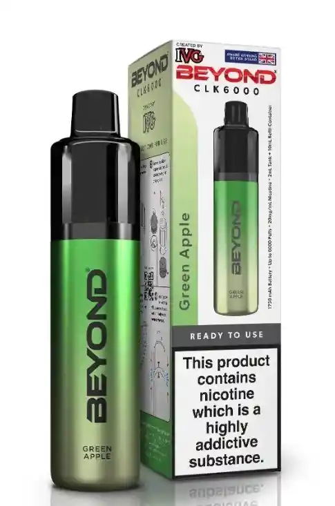 El IVG Beyond CLK 6000 GREEN APPLE cuenta con una batería integrada de gran capacidad ( 1750 mAh) , recargable mediante cable USB tipo C. Incluye un cartucho precargado de 2 ml y un depósito de recarga de 15 ml . Su concentración de nicotina de 50 mg lo hace ideal tanto para principiantes como para vapeadores experimentados. El Beyond CLK 6000 es muy fácil de usar gracias a su sistema de activación por inhalación : basta con inhalar a través de su boquilla para empezar a vapear. HASTA 12000 CALADAS.