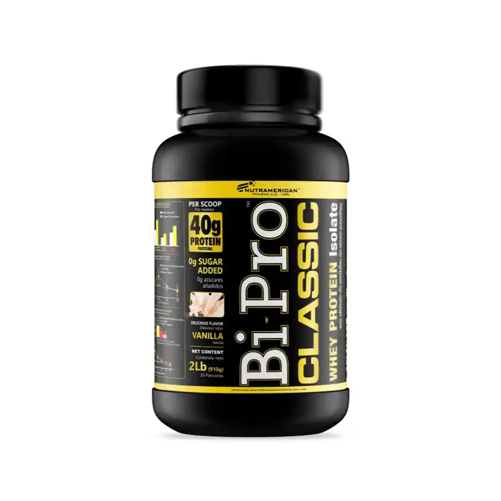 Proteína Limpia sin azúcar ni carbohidratos. No grasa, cero azúcar. Proteína Whey Aislada. Presentación por 2lbs Registro Invima Bi-Pro única proteína de intercambio iónico selectivo, contiene solo alfa-lacto albúmina y beta-lacto globulina, proteínas dentro del suero que contiene el mejor perfil de aminoácidos para los atletas y fisicoculturistas debido a su alto nivel de aminoácidos esenciales y de cadena ramificada. Otra diferencia muy importante entre Bi-Pro y las proteínas de suero comunes (ultrafiltración) es que Bi-Pro es la proteína con menor promedio de peso molecular por la cual posee una digestibilidad muy superior a las demás proteínas de suero. Bi-Pro es el producto nutricional más avanzado disponible en el mercado, ninguna otra proteína es comparable a Bi-Pro en valor nutricional, digestibilidad y concentración proteica. Este producto no pretende diagnosticar, tratar, curar o prevenir enfermedades. Guardar en un lugar fresco y seco, este producto es un suplemento alimenticio y no debe ser usado como sustituto de una dieta equilibrada.