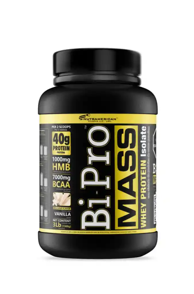 Bi Pro Mass es tu opción ideal si buscas ganar masa muscular y aumentar la ingesta calórica con una proteína limpia y fácil de digerir. Producto con registro INVIMA. Presentación: Tarro por 3 lb (1.36 kg). Dosis recomendada: 2 scoops (60 g) en 400 ml de agua o leche. Servicios por tarro: 22.