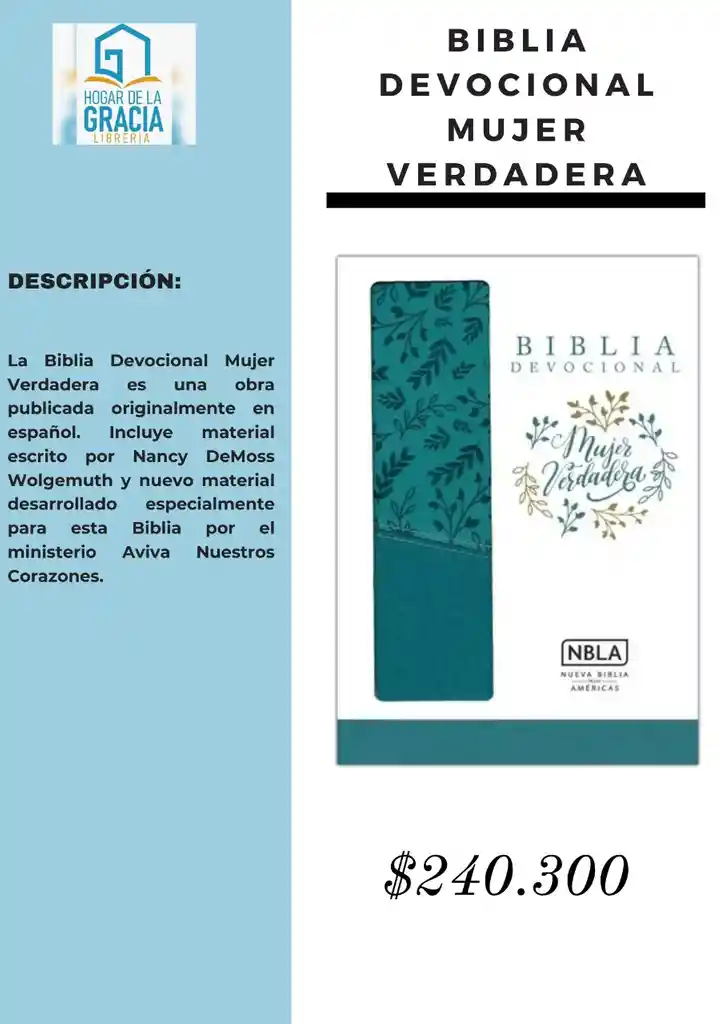 Es una obra originalmente publicada en español. Incluye material escrito por Nancy DeMoss y nuevo material desarrollado especialmente para esta biblia por el ministerio Aviva Nuestros Corazones.