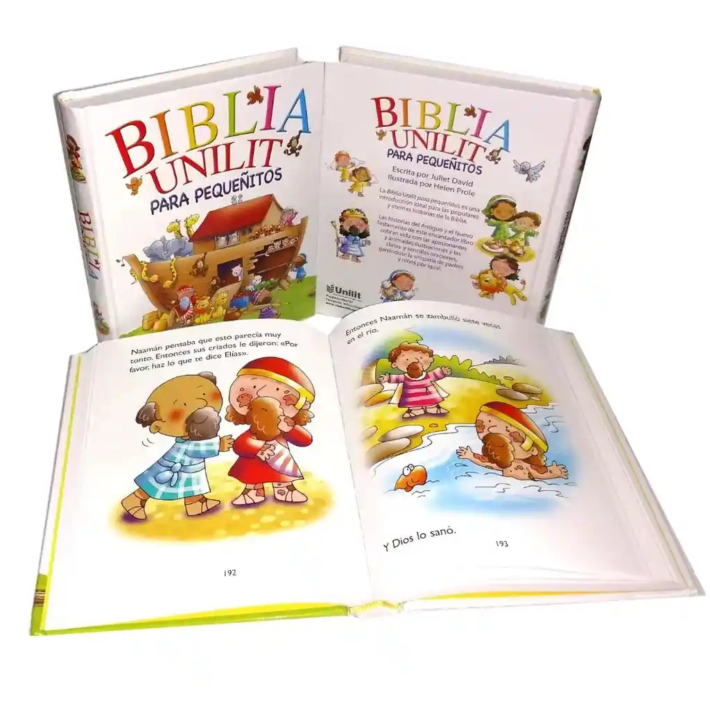Biblia Unilit para pequeñitos Un fantástico libro lleno de historias bíblicas y coloridas ilustraciones escritas de manera especial para los pequeñitos y perfecto para los lectores principiantes. Además, esta es una manera ideal de presentarles las historias clásicas de la Biblia a sus niños. Cada historia se narra con palabras y oraciones sencillas, apoyadas por las brillantes ilustraciones de Helen Prole. ISBN: 9780789916303