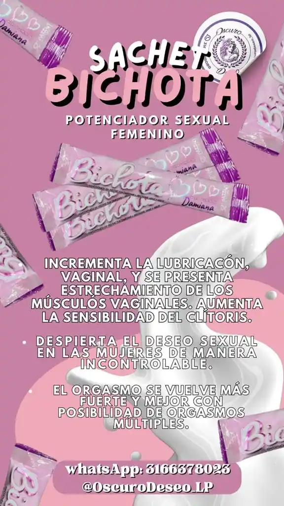 ESTIMULANTE SEXUAL FEMENINO VIENE EN SACHET PARA FACILITAR SU CONSUMO, ACTUA COMO REVITALIZANTE, AUMENTA LA LIBIDO EN LA MUJER.