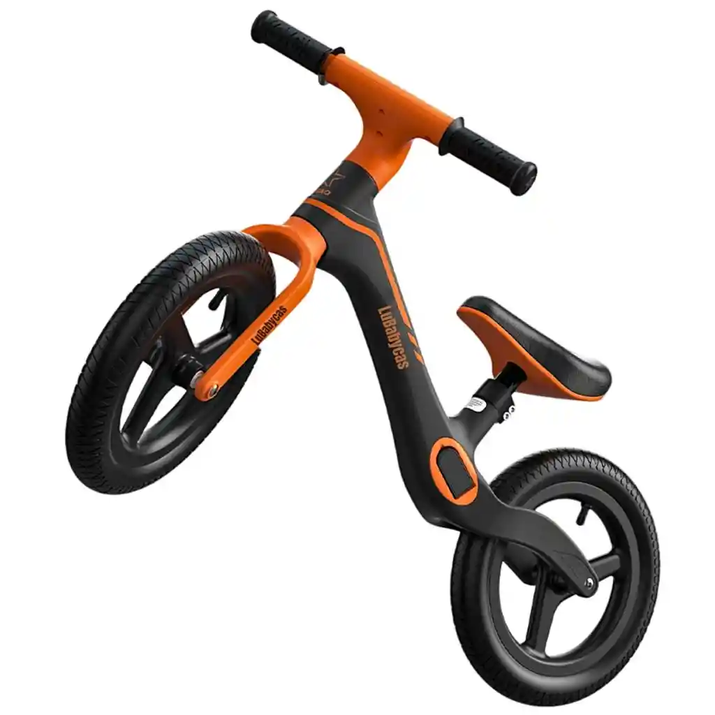 Bicicletas de Equilibrio Balance con reposapies plegable. Descripción: Las bicicletas de equilibrio son bicicletas sin pedales que sirven para enseñar a los niños a mantener el equilibrio sobre dos ruedas, la pueden empezar a usas desde los 18 meses. Características: * Bicicleta de equilibrio * Colores: Negra con naranja * Material: acero de alto carbono * Diseño deportivo con estructura de metal * Asiento acolchado * Peso: 3.5 kg. * Carga: 50 kg * Edad adecuada: 2-6 años * Llantas: 12 in * Tipo de marco: marco duro * Viene sin guardabarros. El paquete incluye 1 x bicicleta de equilibrio balance