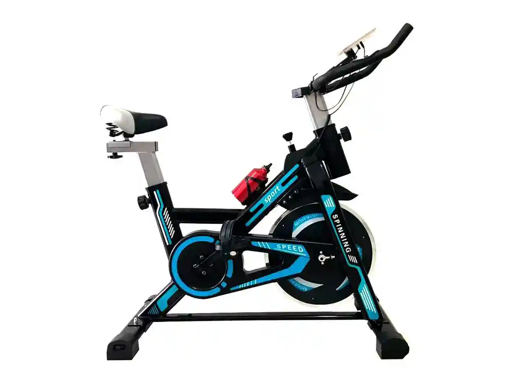 ¿QUÉ BENEFICIOS TIENE LA BICICLETA ESTÁTICA? El Spinning es un método efectivo para fortalecer la musculatura y bajar de peso. La bicicleta de spinning es una de las máquinas de gimnasio que más se usan por lo divertido que puede llegar a ser y la gran cantidad de calorías que podemos llegar a quemar. Las sesiones de spinning combinan entrenamiento aeróbico y anaeróbico gracias a los cambios de ritmo, lo cual es beneficioso para nuestro corazón. Las sesiones, generalmente de 45 minutos de duración, se centran en el trabajo de piernas y glúteos, consiguiendo unos músculos más fuertes y eficientes. CARACTERÍSTICAS - Transmisión de correa - Cuadro en Acero - Manillar y sillín ajustables - Monitor con indicadores de: - Hora - Velocidad - Distancia - Ritmo Cardíaco o Calorías Colores: ROJO, AZUL