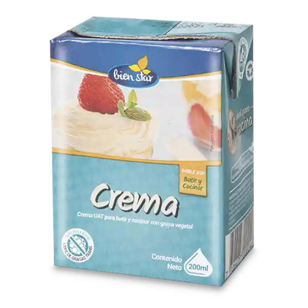 Crema de leche para batir y cocinar con grasa vegetal. Caja x 200 ml. packing: Caja