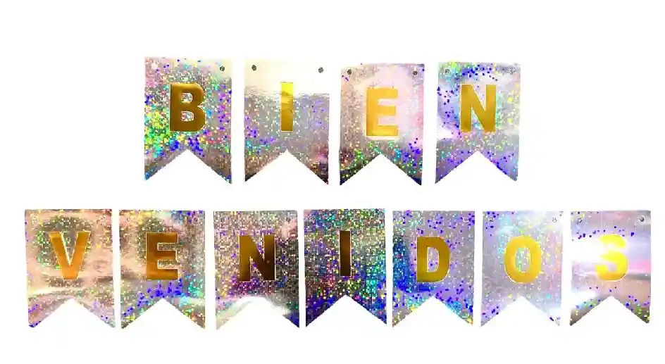 Bienvenidos Guirnalda Letrero Escarchado Pequeño Plateado 16.5X 12 Cm cada banderin I deal para para llenar de felicidad a esa persona que tanto esperas