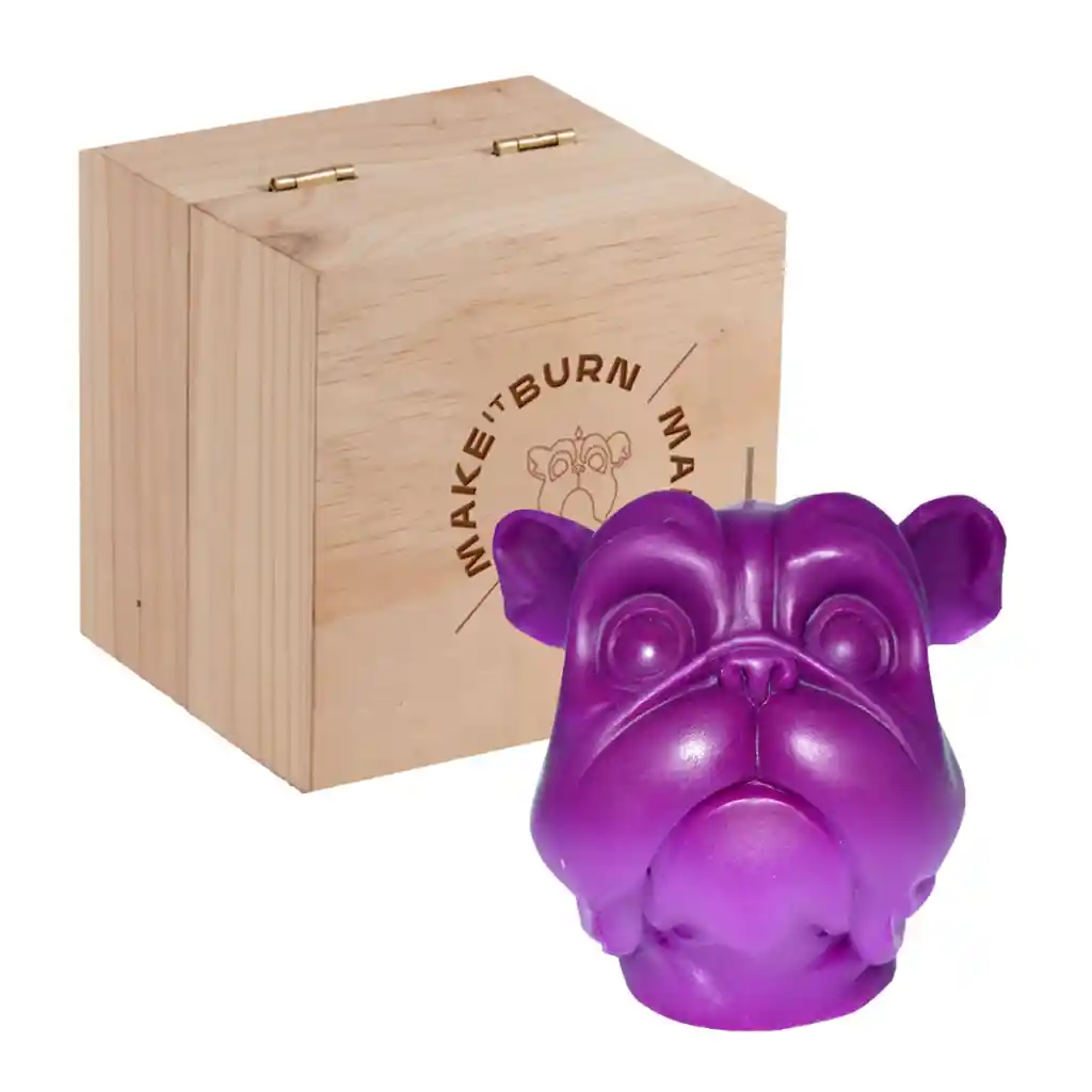 Big Dog. ¡Esculturas en parafina que puedes quemar! Si amas a los perros y no tienes uno en parafina, ¿realmente amas a los perros? Nuestro Big Dog además se puede derretir para experiementar nuevas formas. Viene en un exclusivo empaque en madera de pino diseñado para que lo uses como altar de la escultura. Diseño de Make it Burn, producto 100% artesanal y colombiano.