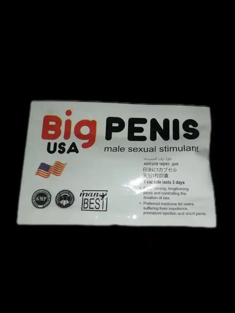 Big Penis Capsula Unidad Potencializador y estimulante sexual No produce efectos secundarios Erecciones fuertes y prolongadas Especificaciones: Presentación: 1 unidad. Dosificación: Se debe consumir 40 minutos antes de la relación sexua