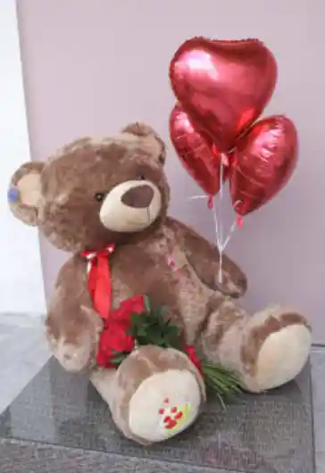 OSO DE 160 CM GRANDOTE!! CON 24 ROSAS O FLORES DE TEMPORADA.