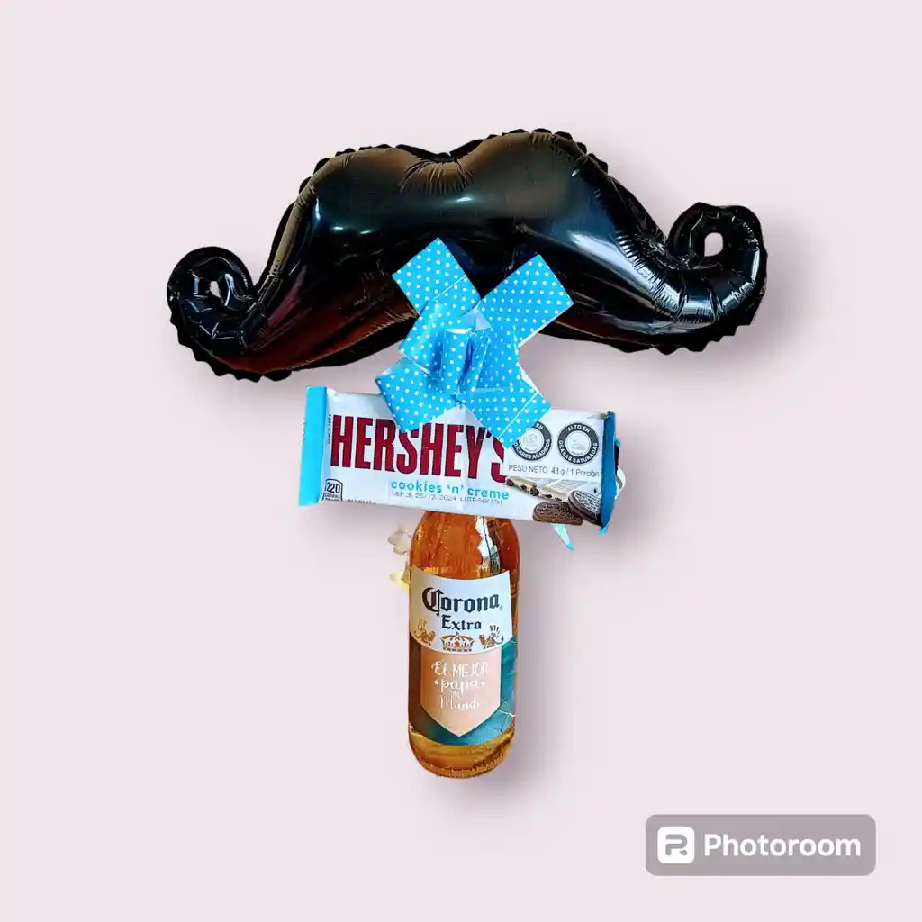 Contiene: Cerveza corona decorada con stickers, globo bigote, chocolatina Hershey´s grande, moño. Ideal para el día del padre Día del profesor Día del abogado Día del ingeniero Cumpleaños