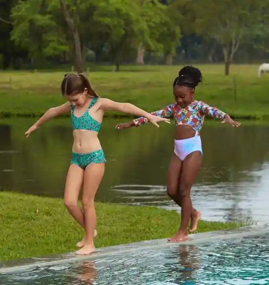 Bikini Eco, con ilustraciones de cacaos hechas a mano, Top ajustable en la espalda y calzón con golitas. adorable! Protección Solar : SPF 50+