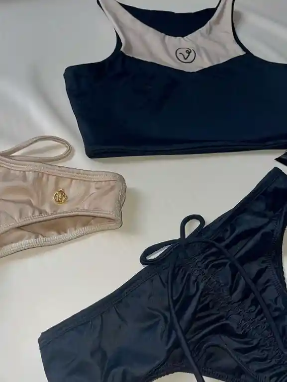 crop top bordado veranee, panty tanga tipo panty con recogido y amarre atras