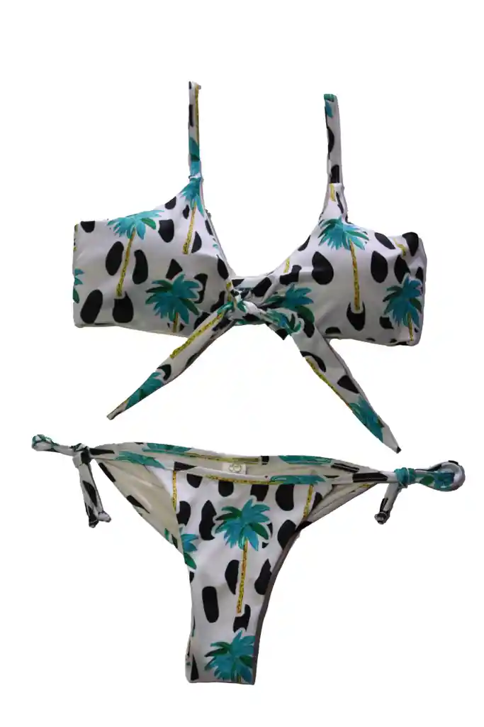 Bikini blanco de palmeras y puntos negros