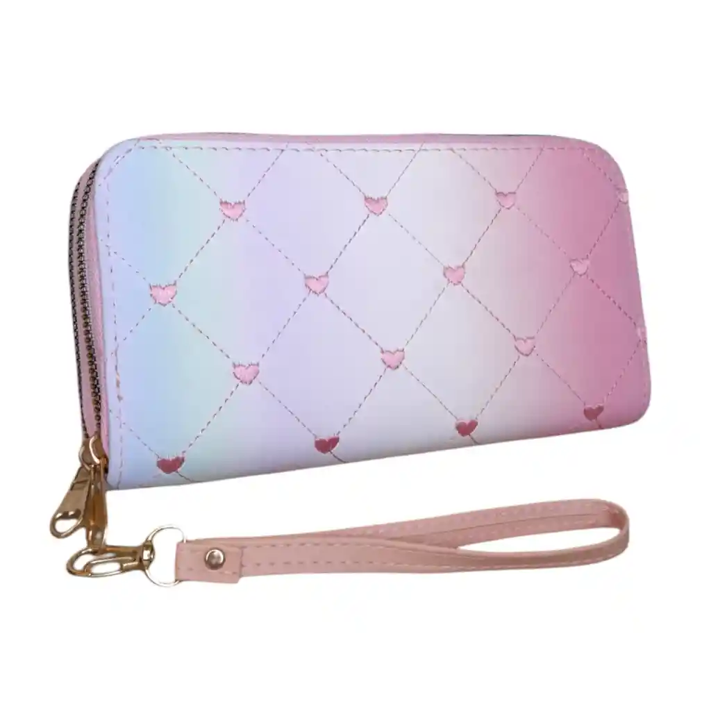 Imagina una billetera que destella con un brillo iridiscente, cambiando de color con cada movimiento que haces. Este efecto tornasolado le da un aspecto mágico y único que captura la atención de todos a tu alrededor. Ahora, añade un toque de romance con unos encantadores corazones adornando la superficie. En cuanto a su estructura, esta billetera puede tener un diseño clásico con múltiples compartimentos para tarjetas, billetes y monedas. Esta billetera tornasolada con corazones es una opción perfecta para aquellos que buscan un accesorio llamativo y romántico que agregue un toque de magia a su estilo diario.