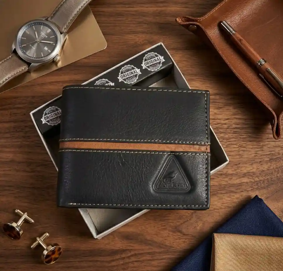 ✨ Billetera Hombre Cuero Genuino Negra con Franja Café ✨ Un accesorio clásico que nunca pasa de moda. Elaborada en cuero genuino de alta calidad, esta billetera ofrece resistencia, durabilidad y un acabado elegante ideal para el día a día. Su diseño en color negro con franja café aporta un estilo sobrio y sofisticado, perfecto para hombres que buscan un toque distintivo sin perder la elegancia. Cuenta con espacios funcionales para organizar billetes, tarjetas y documentos de forma práctica y segura. 🖤 Diseño clásico y masculino 💼 Cuero genuino resistente y duradero 📏 Compacta y cómoda de llevar 🤎 Detalle en franja café que resalta tu estilo Un complemento esencial que combina calidad, funcionalidad y buen gusto en cada detalle.