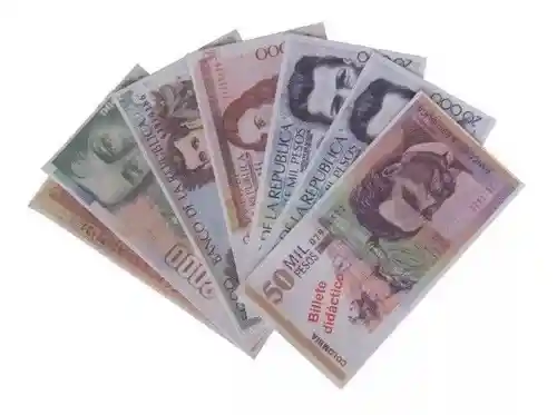 BILLETES DIDACTICOS CON MONEDAS MEDIDAS: LARGO 12 CM, ANCHO 5 CM