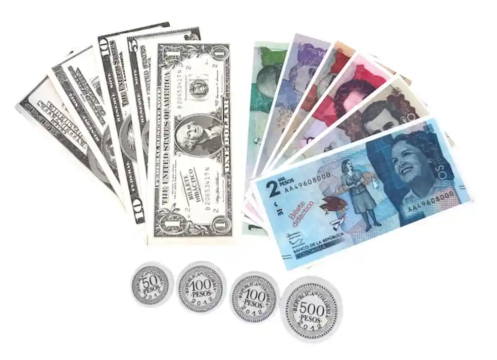 Billetes Didacticos Pesos Y Dolares Con Monedas. Paquete x 100 billetes