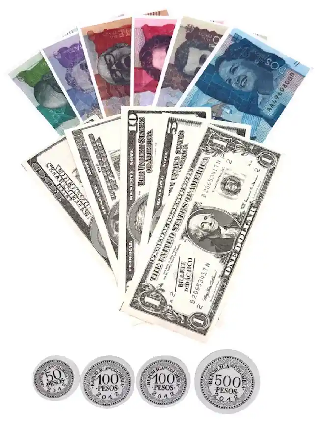 Billetes Didacticos Pesos Y Dolares Con Monedas. Paquete x 100 billetes
