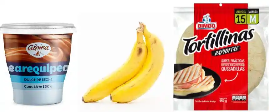 Tortilla Bimbo con Arequipe Alpina y 2 Bananos