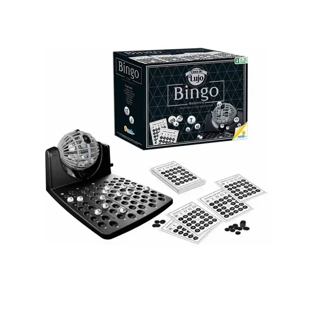 Caracteristicas: •Medida caja: 30,8 x 23,8 X 15 cm •Contenido: 1 Balotera Plástica •1 Tablero De Control Plastico: 30 x 23 Cm •75 Balotas •40 Cartones de tableros •400 Fichas