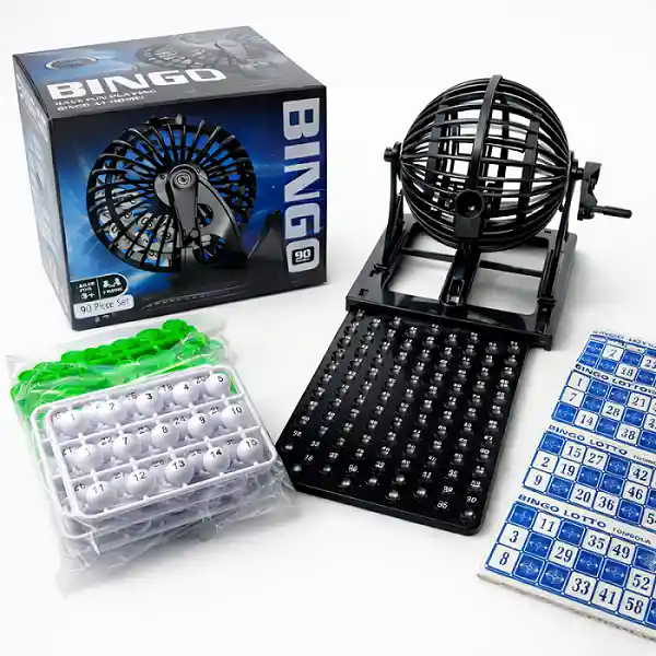 Bingo - Juego de Mesa Familiar Incluye: - 1 balotera giratoria manual - 90 balotas numeradas - 48 cartones de bingo NOTA: El color del producto se envía aleatoriamente, sujeto a disponibilidad. Cantidad de jugadores: 2 o más Edad recomendada: 6 años en adelante Tipo de juego: Manual (no requiere baterías) Características: - Diseño práctico y fácil de usar, ideal para partidas dinámicas y entretenidas. - Ayuda a desarrollar habilidades como la atención, el reconocimiento de números y la socialización. - Ideal para reuniones familiares, fiestas y celebraciones, actividades recreativas y educativas. ¡Un juego clásico que nunca pasa de moda y garantiza diversión para todas las edades!