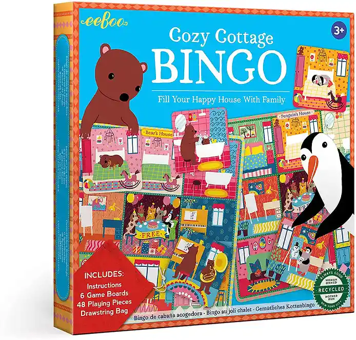 Empaque de regalo sin costo adicional, escríbenos al finalizar la compra. 3 años + El bingo didáctico de las partes de la casa es un nuevo enfoque conmovedor con un nuevo patrón del juego clásico, Bingo. Cada tablero de juego es la casa de un animal diferente con 8 habitaciones vacías. Cada jugador elige un chip de la bolsa de tela (incluida) y elige un chip impreso con las mismas habitaciones pero con personajes de animales representados. Si el jugador tiene la tarjeta de casa que se conecta al chip comienzan a llenar sus casas con una familia cálida y amigable. La primera persona en llenar toda su casa con la actividad bulliciosa gana. Además del juego simple es una oportunidad para hablar de las actividades que los animales están haciendo, bañarse, comer, jugar y hacer historias. Una actividad perfecta para contar historias de alfabetización temprana.