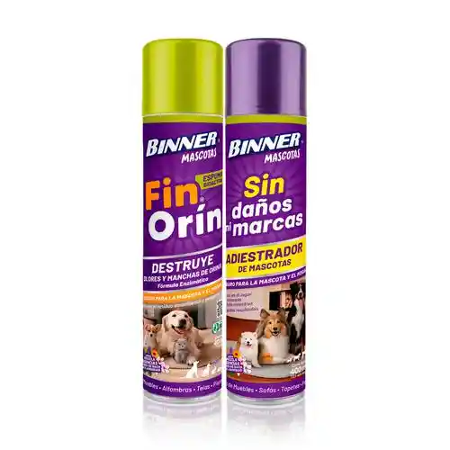 El aerosol fin orín es un producto eficaz para eliminar las manchas y olores de la orina de las mascotas. Su fórmula enzimática ataca las manchas y los olores, eliminando el residuo amarillento y pegajoso dejado por la orina. Es completamente seguro para usar alrededor de las mascotas y en el hogar, por otro lado, el adiestrador de mascotas Binner es recomendado para mejorar el comportamiento de tus mascotas. Se utiliza en el momento en que se encuentra a tu mascota cometiendo una travesura. Ayuda a mantener alejadas a tus mascotas de muebles, alfombras y otras áreas que se deseen proteger, contribuyendo así a tener un hogar libre de daños.