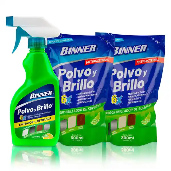 Contiene 3 Unidades. Limpiador Polvo y Brillo 300 mL +Recargas 300 mL c/u