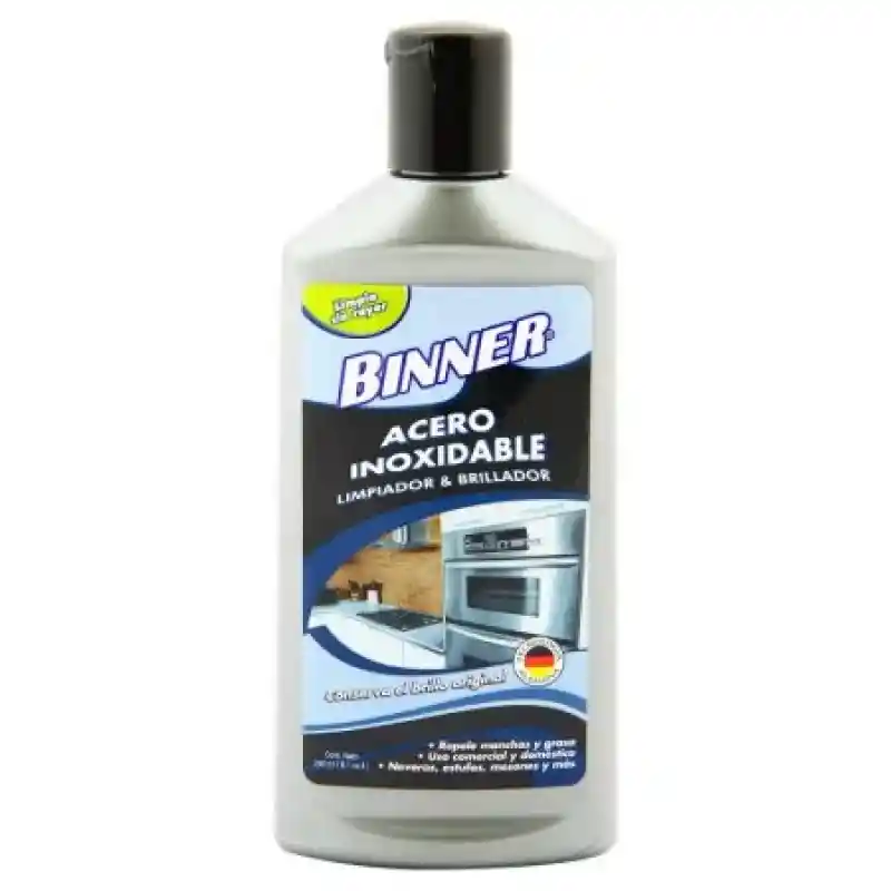 Limpiador y brillador para acero inoxidable. Limpia sin rayar. Conserva el brillo original. Tecnología alemana, repele manchas y grasa. Uso comercial y doméstico. Ideal para neveras, estufas, mesones y más. Contiene una fórmula especializada creada específicamente para cuidar, mantener, proteger y brillar delicadamente todos los electrodomésticos y mesones en acero inoxidable.