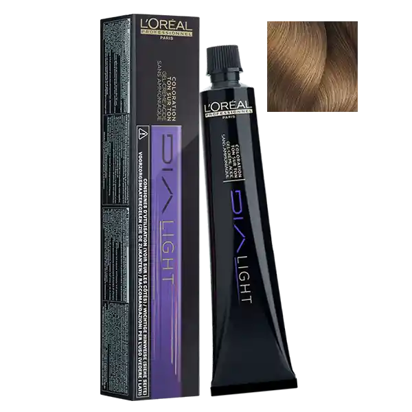 Coloración Dia Light, Coloración Gel-Crema Tono Sobre Tono Con Ph Ácido Para Cabellos Teñidos o Sensibilizados. Solución 2 en 1 Que Neutraliza Los Reflejos y Proporciona un Mas de 30% de Cuidado. Color Uniforme y Brillante. Permite Aportar Comodidad al Cabello y Tratarlo Sin Dañarlo. Se Rejuvenece la Fibra Capilar.