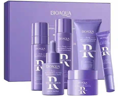 ¿Qué Incluye el Kit? 🔹 Limpiador facial: Elimina impurezas, restos de maquillaje y exceso de grasa sin resecar la piel. 🔹 Tónico facial: Prepara la piel, equilibra su pH y mejora la absorción del tratamiento. 🔹 Sérum de retinol: Un potente concentrado que estimula la producción de colágeno y renueva la piel desde adentro. 🔹 Contorno de ojos: Hidrata y atenúa líneas finas, bolsas y ojeras. 🔹 Loción facial: Ligera y de rápida absorción, aporta hidratación y elasticidad. 🔹 Crema facial: Sella la hidratación y potencia los efectos antiedad del retinol.