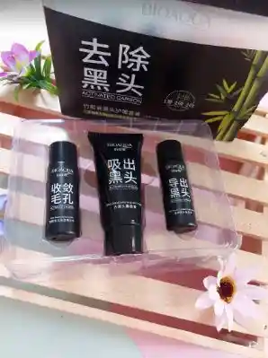 Se compone de 3 tarros, el primero ayuda a abrir los poros de la nariz para ayudar a la extracción de los puntos negros, el segundo tarro consta de una mascarilla negra tipo peel off q se coloca en la nariz, se espera q seque y se arranca, llevándose consigo los puntos negros y la piel muerta y el tercer tarro ayuda a cerrar los poros de la nariz para q no queden abiertos y se vuelvan a llenar de suciedad rápidamente.