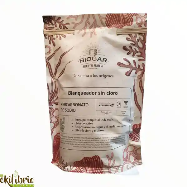 El Percarbonato de sodio, también conocido como Oxígeno activo, es un excelente blanqueador y quita manchas en superficies. No contiene cloro ni fosfato, respetando las aguas y el medio ambiente. Disuelve de manera rápida y eficaz todo tipo de manchas, ya sean de té, café, vino tinto y sudor sin dañar sus tejidos cuando lo usas en agua caliente, es ideal para preservar de manera natural el blanco de la ropa. Viene empacado en una bolsa compostable de maíz.