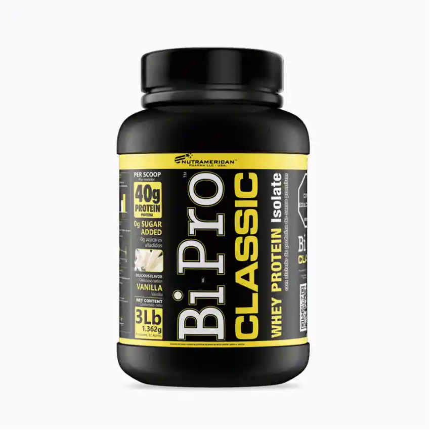 -PROTEINA DE SUERO DE LECHE BOVINA -SABORIZANTE ARTIFICIAL IDENTIC O AL SABOR VAINILLA -CLORURO DE SODIO -GOMA XANTANA (ESPESANTE) Modo de uso de BiPro Classic Mezcle 1/2 media de BiPro Con 4 onzas de agua, leche descremada o adicione su bebida preferida.