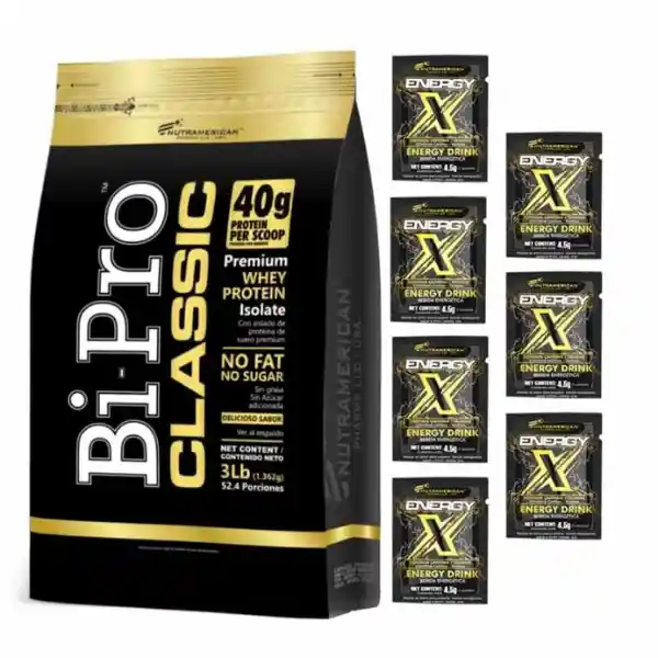 PROTEINA BIPRO CLASSIC 3LBS + 7 ENERGY X (SERVICO/4.5G) ENERGIZANTE. Es la proteína ideal de cambio iónico, que incluye solo a-lactoalbumina y ß-lactoglobulina. Estas proteínas dentro del suero abarcan la mejor línea de aminoácidos para atletas y físico culturistas; esto se da su alto grado de aminoácidos básicos y de cadena derivada, que son los que realmente necesita el cuerpo para el desarrollo de capa muscular. Para tener encuentra una diferencia muy importante entre biPro y las proteínas de suero comunes (ultrafiltración), es la carga molecular promedio de las fracciones de proteína; es la proteína con menor promedio de carga molecular por la cual biPro posee una digestibilidad muy superior a las demás proteínas de suero. La avanzada tecnología de biPro selecciona no solo “verdaderas” proteínas intactas; posee menos de 5% de proteínas no nitrogenadas (Non Protein Nitrogen). Otras proteínas de suero contienen arriba del 20% de componentes no nitrogenados.