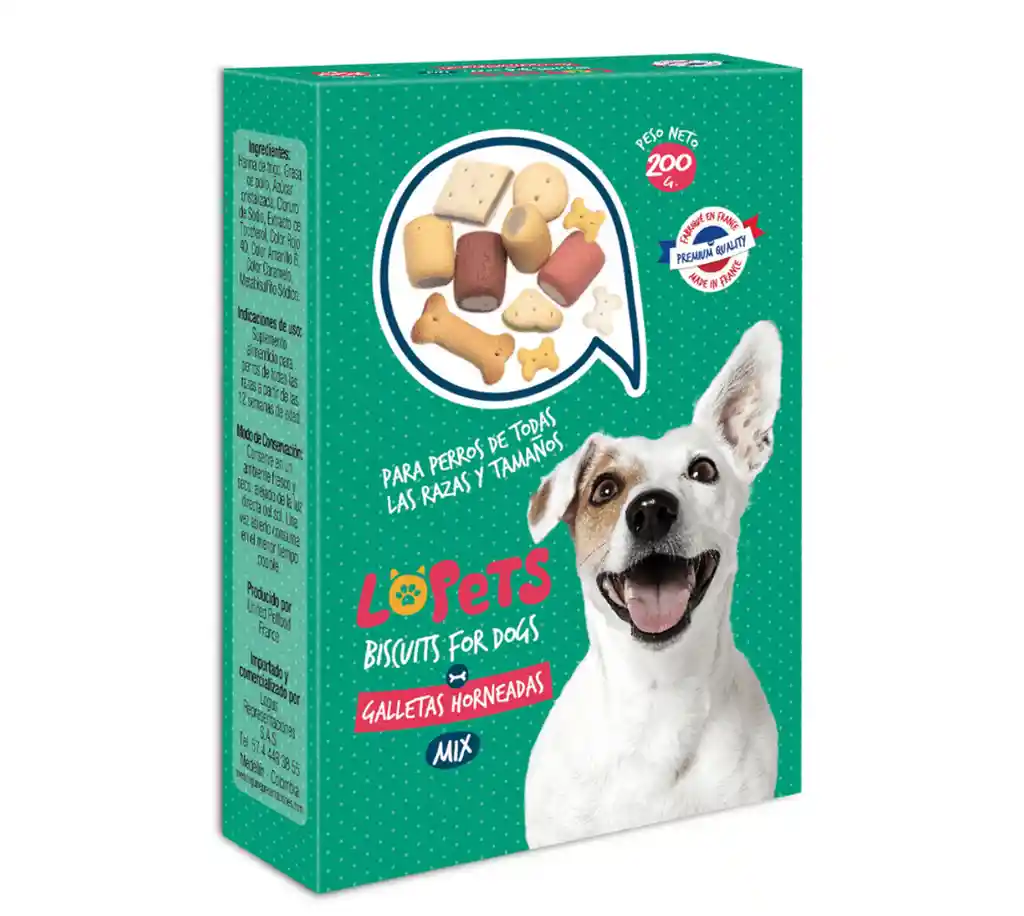Lopets biscuits for dogs son galletas horneadas hechas a base de trigo, con formas diferentes y divertidas. Con ingredientes orgánicos y bajos en grasa para mantener la salud de su perro y proteger el medio ambiente. Para proporcionar a perros de todas las razas y tamaños.