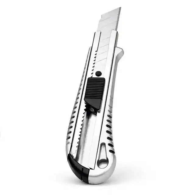 Bisturí metálico resistente y duradero, ideal para trabajos de precisión en manualidades, diseño, modelismo, arte y oficina. Su cuerpo metálico brinda mayor firmeza y control al cortar, permitiendo realizar cortes limpios y detallados en papel, cartón, vinilo y otros materiales delgados. Herramienta práctica y confiable para uso profesional o creativo.