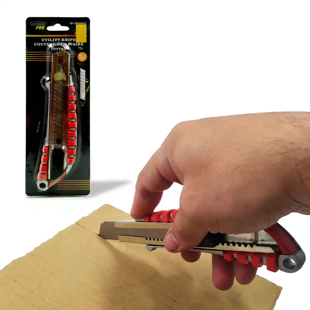 BISTURÍ PARA USO PESADO Bisturi con hoja retractable y con mango hergonomico y con partes en goma para una mejor utilizacion de este comoda y segura. El bisturi trae una cuchilla que podras remplazar facilmente cundo esta se desgaste. Tamaño de las cuchillas 18 mm Tamaño bisturí: 16 cm de Largo. Material: Aluminio.
