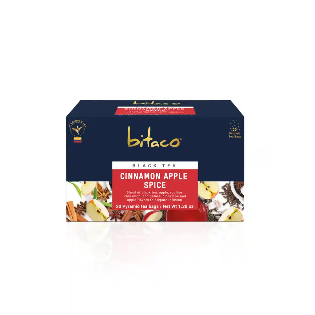 Una mezcla perfecta de té negro premium con la dulzura natural de la manzana y el toque especiado de la canela. Su aroma envolvente y sabor reconfortante lo convierten en la bebida ideal para revitalizar tus mañanas o acompañar tus tardes. ☕ Notas de sabor: Intenso, afrutado y especiado. 🌿 100% natural – Sin colorantes, sin conservantes. 📦 Presentación: Caja con 20 sobres individuales para mantener la frescura y el aroma. 🇨🇴 Origen: Cultivado y elaborado en Colombia por Bitaco® – té premium de origen único. Ideal para: Disfrutar caliente en días fríos o helado en días cálidos. Un toque energizante a cualquier momento del día. Acompañar postres o meriendas. ✨ Deja que la fuerza del té negro, la calidez de la canela y la frescura de la manzana te inspiren.