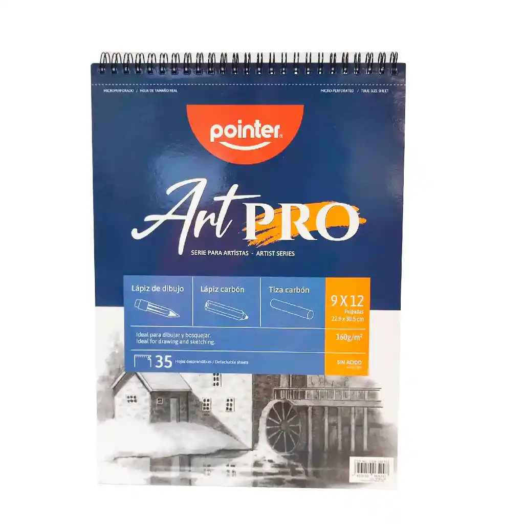 bitácora para dibujo pointer art pro 9x12 pulgadas 35 hojas argollado, ideal para bosquejar, lápiz carbón, tiza carbón y lápiz de dibujo. Somos Bocetos Papelería. Empresa Santandereana, ubicados en Bucaramanga, con más de 40 años en el mercado, orgullosos de ser distinguidos en el ámbito comercial, por cumplir a cabalidad nuestra mayor política: brindar siempre y en todo momento una experiencia de satisfacción total a las necesidades de nuestros clientes. Este block está hecho con un papel para dibujo de 160 gramos libre de ácido, que cuenta con una superficie de grano fino ideal para bocetar y dibujar. Recomendado para técnicas como: lápiz de dibujo, tiza carbón y lápiz de carbón Su tamaño es de 9 x 12 pulgadas ( 22.9 x 30.5 ) cm - Cantidad de 35 hojas - Portada en pasta blanda -Argollado metálico doble o. -35 hojas desprendibles